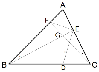 そのためには、下図の ∠BFC が 90 度 であることを証明すればいいのです。