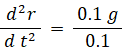 質量 0.1 kg の球を高さ 4.9 m の所から自然落下させたときの運動方程式: