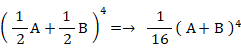 赤色細胞が誕生する事象を A とし、青色細胞が誕生する事象を B とすると、上記の確率分布は次の式を用いて表すことができます。