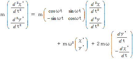 したがって、 A君の等速自転座標系におけるB君の運動方程式は次のようになります。