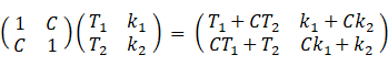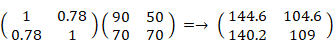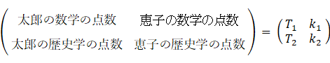 さて、先ほど示した相関行列を表現行列とするテンソルにより、甲さんのテスト結果ベクトル は 甲さんの知能ベクトル へと変換され、乙さんのテスト結果ベクトル は 乙さんの知能ベクトル へと変換されます。