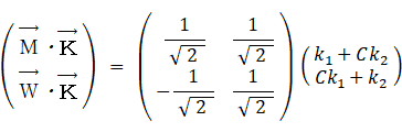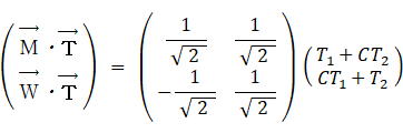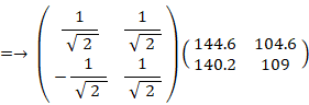 座標軸を原点を中心にして45°反時計回りに回転させる座標変換により、甲さんの知能ベクトル と 乙さんの知能ベクトル は次のように変換されます。