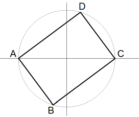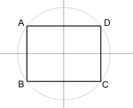 4つの点ABCDが半径5の同円周上にあります。AB=6,AD=8,BD=10 です。これらの位置ベクトルの総和は0です。4点を結ぶと長方形になります。