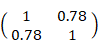 固有値 1.78; ( 0.707, 0.707 ) ← これは傾き45°のベクトルである。