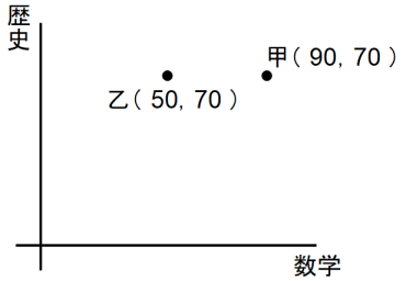 甲さんと乙さんの数学と歴史の2つの教科のテストの年間平均点は次のようになっています。