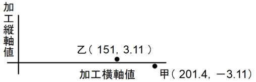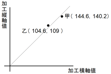 A君の数学と歴史学の年間平均点の偏差比の加工された第2主成分は次のようになります。