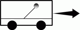 の矢印たちで表される重力場の分布図が出来上がります。 この 「 みかけの重力場 」 と本来の重力場を合成すると、 電車の空間内には、 進行方向と逆向きでかつ地方向の45度の方向に一様な重力場が形成されていることになります。 もし、 電車に座っている人がヘリウム風船を持っていたとしたら、 それは進行方向でかつ天方向の45度の方向に浮かびます。