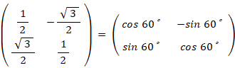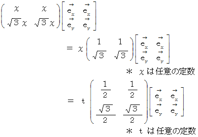 この2つの大きさが1の固有ベクトルのベクペアの表現行列は次のようになります。