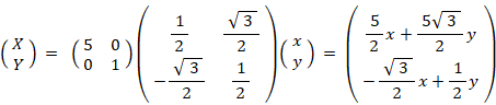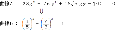 という表現行列を持つ演算テンソルによる 曲線A から 曲線B への写像は、 次のようになります。