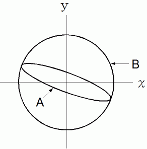 ( 固有ベクトル空間 ) では、 この写像は、 曲線A上の点の