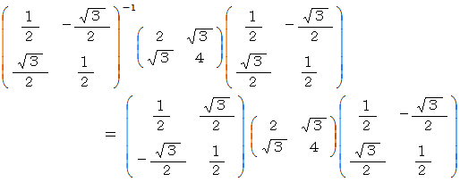 ( 固有ベクトル空間 ) への座標変換をしてくれるのは直交行列を表現行列とする座標変換テンソルになります。一般に、演算テンソルは固有ベクトル空間では対角行列を表現行列とする演算テンソルに変換されますので、 これを行列の変換にスポットを当て 「 直交行列による対称行列の対角化 」 と言います。ではこれから、