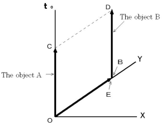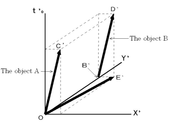 ) exerting an influence on the object B on the observation of an observer traveling with the same velocity as the object B is as follows: