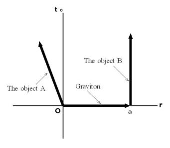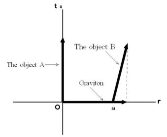 Please see Figure 1803. This figure shows the 1st observer's coordinate system. It shows that a graviton, which is emitted from the object A when the object A just existed on the origin, reaches the object B . To simplyfy, three-dimensional space is expressed with two-dimensions. The distance of the object A and B is