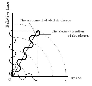 in the positive direction of the X-axis. A photon emitted from the 'relative space electric current' reaches the electric charge