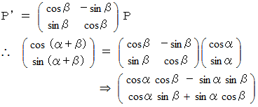 加法定理の最も簡単な証明法は、 点の回転写像を用いる方法だと思います。