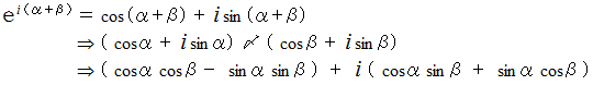 三角関数 指数・対数関数 > 余弦定理よ で述べたように、 加法定理 は 余弦定理 を用いて証明することもできます。 一方、 オイラーの公式 と 複素数ベクトルのかけ算 を用いた証明もあります。