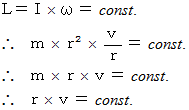である。 人工衛星の速さと軌道半径とには、 角運動量保存の法則より導かれる、 次のような関係がある。