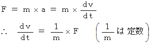 力とは、物質の空間移動の速度を時間的に変化させるものです。これは次の運動方程式から導かれる力の定義です。