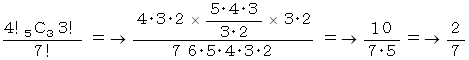 ( 5! × 6C3 × 3! ) ÷ 8! =→ 5 / 14