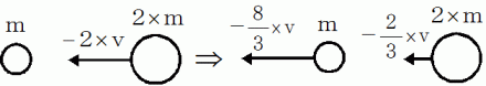 で移動していますが、 衝突後は、 観察者は、 左向きに速さ