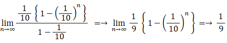 初項が 1/10 、公比が 1/10 の無限等比数列の和( 無限級数 )は次のようになります。