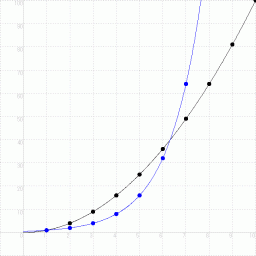 で表される直線上の等間隔な点の集合になります。初項 a1, 公比 r の等比数列を、 第 x 項を横軸にし、 その値 y を縦軸にして、 グラフで表すと、