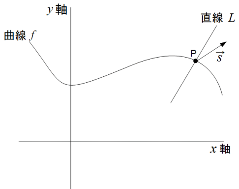 f をグラフで表し、点Pにおいてそれと直角に交わる直線