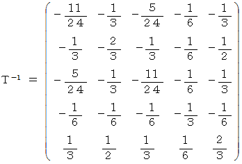 T : matrix ( [-4, 1, 0, 1, -1], [1, -4, 1, 0, -2], [0, 1, -4, 1, -1], [1, 0, 1, -4, 0], [1, 2, 1, 0, 4] ) ;