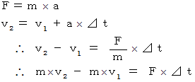 と合います。コメント : 力積は運動量の差です。 なぜなら、 次の式が成り立つからです。