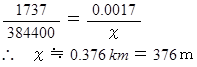 月の半径を 1737 km 、 地球と月の距離を 384400 km としてください。