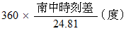 まず、 月の南中時刻を求めます。 そして、 それを現在の時刻から引いて、「 時 」の単位で表します。 それを「 南中時刻差 」ということにします。 それは負の数になることもあります。