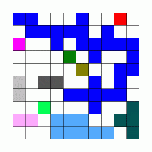 このプログラムは、 最初に行ごとにつながっている所をみつけ、 次に列ごとにつながっている所をみつけ、 その次に再び行ごとにつながっている所をみつけ、 その次の次に再び列ごとにつながっている所をみつけ、 その次の次の次に ・ ・ ・ ・ というふうにして繰り返すうちに結論に到達するようになっています。