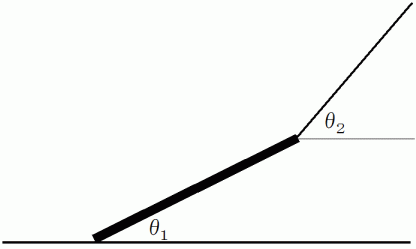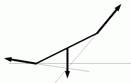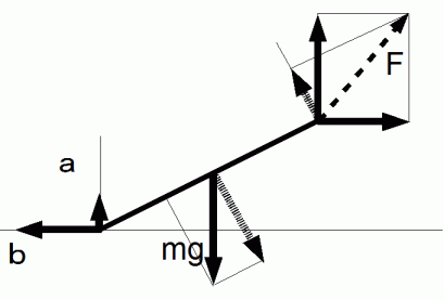 の角度上向きの方向に引っ張り続けます。 すると、 鉄棒のもう一端は床に対して移動せず、 下図のように鉄棒は床面に対して