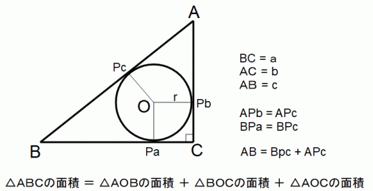 内接円の半径を3辺の長さを用いて表す方法に2つある。