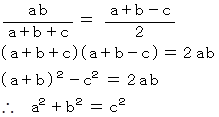 ピタゴラスの定理( 三平方の定理 )が導かれた。