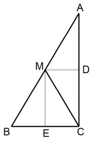 Mを通るBCに平行な直線がACと交わる点DはACの中点であり、