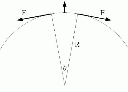 になります。 向心力は媒質の微小部分の両端に作用する張力の遠心力方向と反対の方向の成分の和であり、 次のようになります。