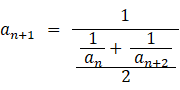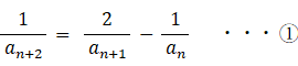 これを見ると、ある項の値は前後の項の調和平均( 逆数の平均の逆数 )になっています。ですから、自然数の逆数の数列は調和数列( 各項の逆数が等差数列になる数列 )に属します。