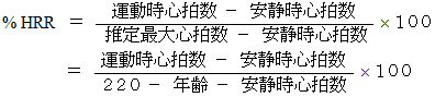 運動時予備心拍数 の 最大予備心拍数 に対する割合。
