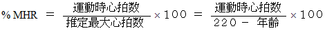 運動時脈拍 の 最大脈拍 に対する割合。