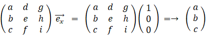 このテンソルによって3つの基底はそれぞれ次のように変換されます。