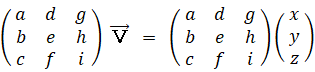 3次元ベクトルを対象とするテンソルの表現行列は、基底の写像のベクトリオ( 私の造語 )で表されます。