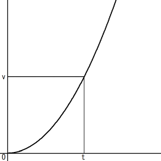 例えば、今よりも t 秒前に 初速0で自由落下を開始した物質の v t グラフ は次のようになります。