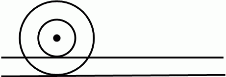 半径が 1 : 2 の車輪を中心を重ねて固定し軸を付け、 同時に回転するようにします。 真っ直ぐなレールを水平に2本設置して、 2つの車輪が同時に転がるようにします。そして、 大きな車輪が転がるレールには滑り止めを塗り、 小さな車輪が転がるレールには潤滑油を塗ります。 大きな車輪を 1 回転させると小さな車輪も 1 回転します。 大きな車輪が移動した距離は円周の長さと同じですが、 小さな車輪が移動した距離は円周の長さの2倍です。 そこで、 小さな車輪の円周の長さは大きな車輪の円周の長さに等しいのではないかという疑惑が生じます。 しかし、「 小さな車輪は滑りながら転がり、 その割合は半々であった。」と考えると辻褄が合います。