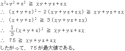 A先生の新人門下生の数を x 人、 B先生の新人門下生の数を y 人、 C先生の新人門下生の数を z 人とします。 ( ただし、 x ≦ y ≦ z )