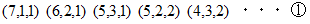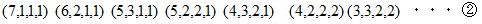 次に9を4個に分割することを考えますと迷宮に入りますので、 10を4個に分割することを考えることにします。 すると、 次の7通りになります。