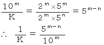 という命題は真ですので、 1/K は有限小数であることが判りました。
