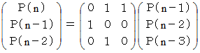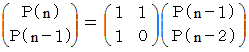 この行列の式のアルゴリズムを用いて数列を表示するプログラムは、 次のようになります。