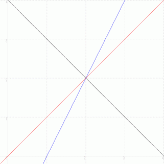 として、 これらの式をグラフで表します。まず、 ある点 ( x,y ) = ( a 1 , 0 ) から出発して y 軸 と平行に移動し、