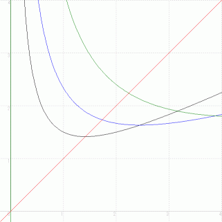 のグラフの交点に無限に近づいていく場合 の3通りあります。 一番目の例としては、